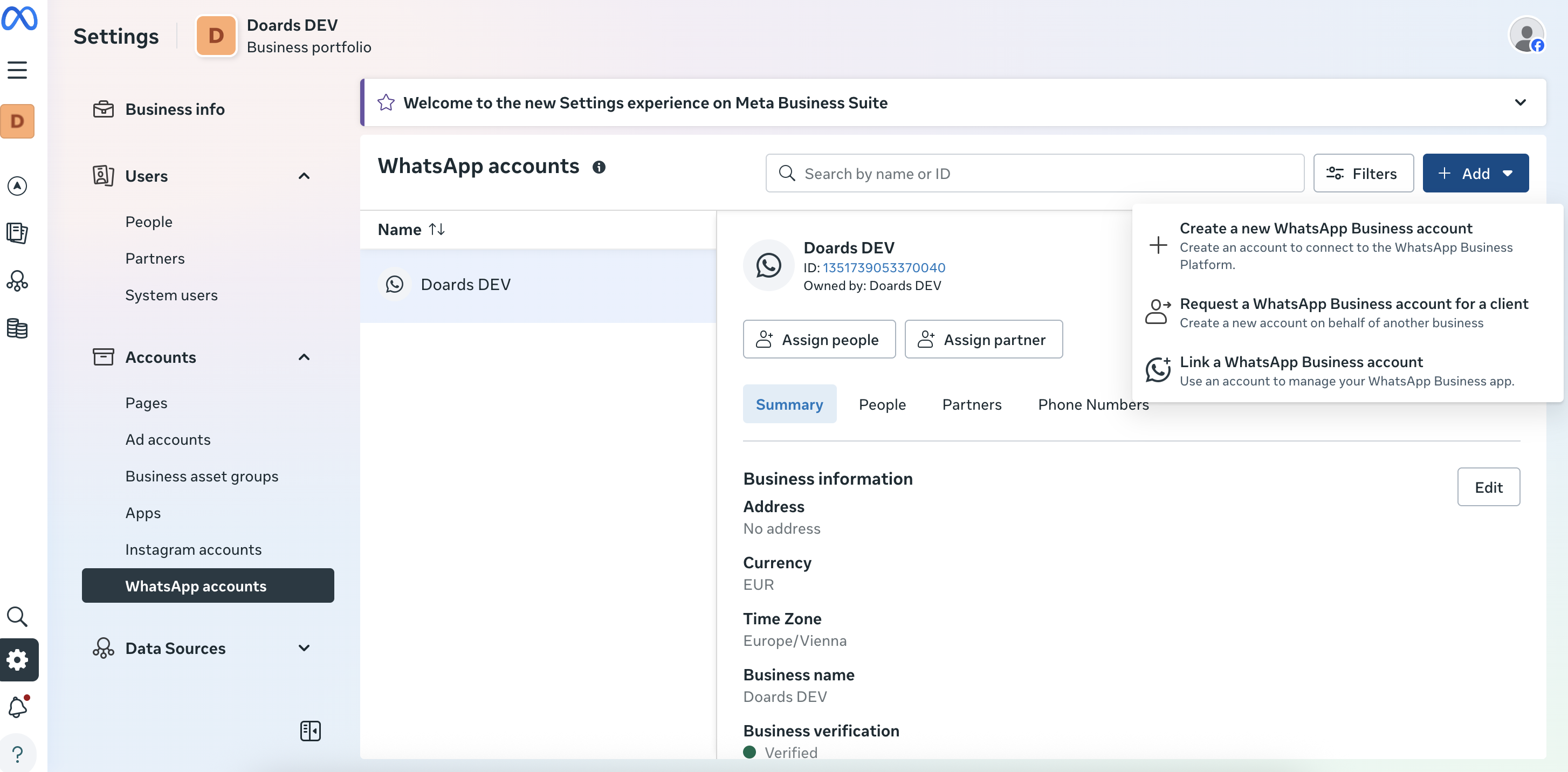 - Erstellen Sie einen neuen WhatsApp Business Account